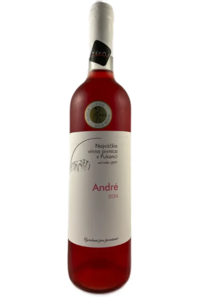 André ročník 2024, odrodové ružové víno, polosladké, bez zemepisného označenia. Toto víno sa predstavuje sýtou, žiarivou ružovou farbou, ktorá v pohári pôsobí sviežo a lákavo. Vzniklo rýchlym lisovaním hrozna odrody André, čím si zachovalo svoju jemnú ovocnosť a sviežosť. Vôňa je intenzívna a hravá – dominujú jej tóny čerstvého záhradného ovocia, ako sú maliny, jahody a červené ríbezle, ktoré pozývajú k prvému dúšku. Chuť je šťavnatá, s príjemnou polosladkou harmóniou, ktorá podčiarkuje ovocný charakter vína. Záver je hladký, s jemným smotanovým dotykom, ktorý dodáva vínu zamatovú eleganciu a dlhú dochuť. André z tohto ročníka je ideálnym spoločníkom k ovocným dezertom, jemným syrom, ľahkým šalátom či ako osviežujúci pohár na letné posedenie.